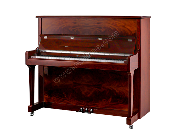 德國R?slau(羅斯勞)琴弦;德國mendelssohn專制羊毛擊弦槌;德國原裝進口音板,并配有音板保證卡;松實木鍵盤、烏木黑鍵,令手感更加舒適、靈敏。