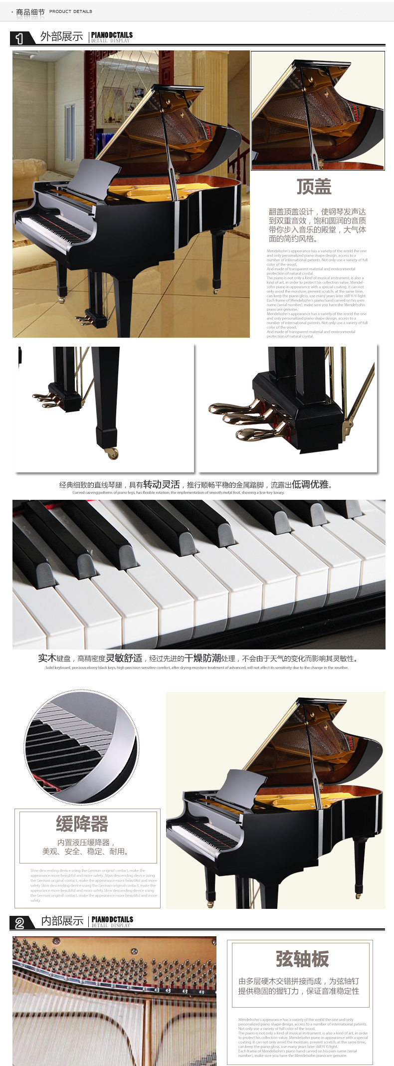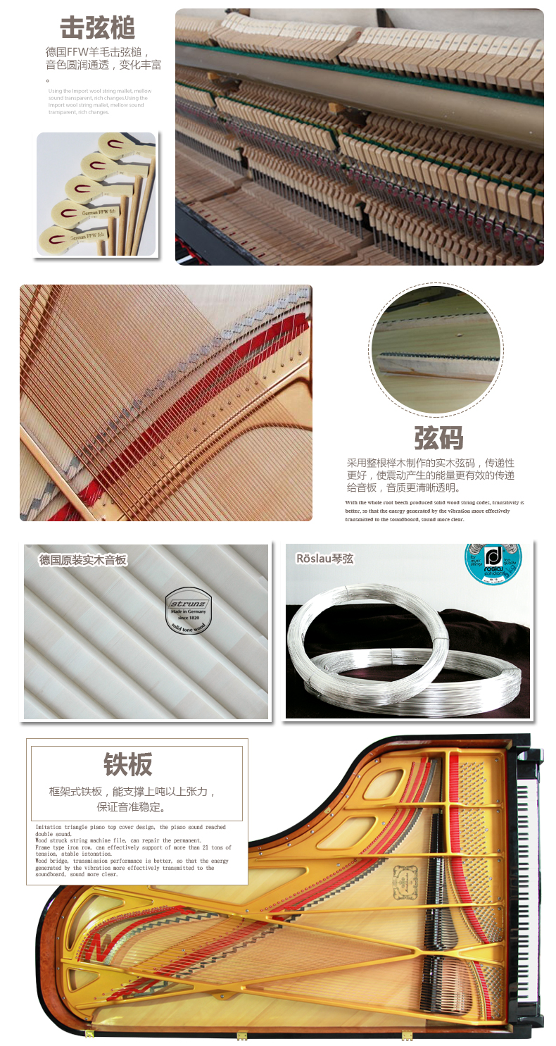 1.榔頭:擊弦槌采用德國(guó)進(jìn)口FFW優(yōu)質(zhì)尼氈,音色柔和優(yōu)美